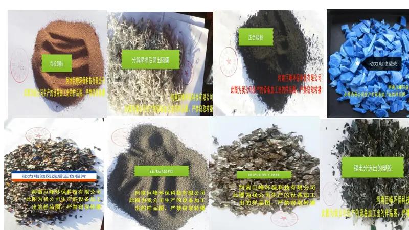 廢舊鋰電池破碎分選后的各種物料——巨峰環(huán)保
