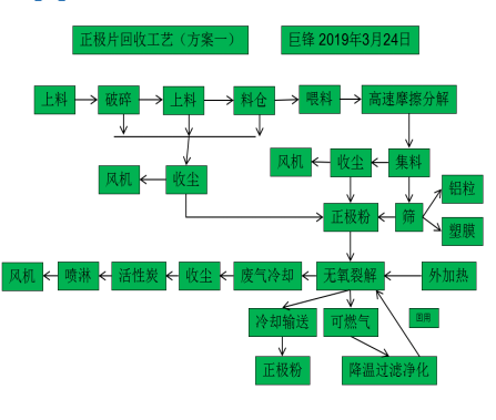 2、綜合分選循環(huán)風系:揮發(fā)后鋰電物料進綜合分選可把鋰電池分選為4類①磁性物(鐵和鎳)②塑料隔膜③銅塊鋁塊不銹鋼殼體等④正負極片料;極片直接進摩擦脫粉設備,分選風為全循環(huán)使用;把少量排出廢氣進裂解燃燒系統進行補充氧用。