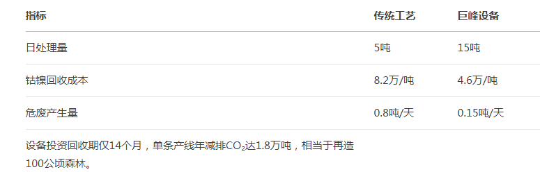 日處理量提升了200%,鈷鎳回收成本降低了44%,危廢產(chǎn)生量降低了81%。